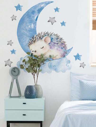Watercolor Moon Star Animal Wall Stickers, Peel And Stick Wallpaper Wall Art, Wall Paper Peel And Stick, Wall Decor, Kids Room Decor, Kids Bedroom, Baby Nursery, Nursery Decor, Baby Room Decor