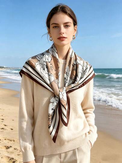 1pc Multi-Color Rose Pattern Scarf/Shawl, Soft & Elegant For Spring/Summer, Can Be Worn Around Waist Or Shoulders To Switch Up Styles