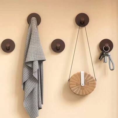 1 st rund träväggkrok utan borrning - Kaffebrun - Visa 10