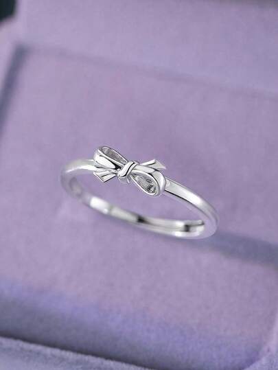 1pc S925 Sterling Silver Sweet Cute Bow Knot Ring, Niche Daily Versatile Fashion Midi Ring, Girlfriend Gift