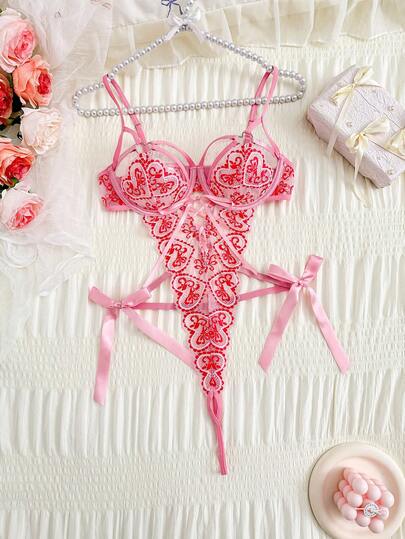 1 st sexigt spetsunderkisset med kors och rygg och djupt V-mönster, romantiskt och förföriskt - Multifärgad - Visa 6
