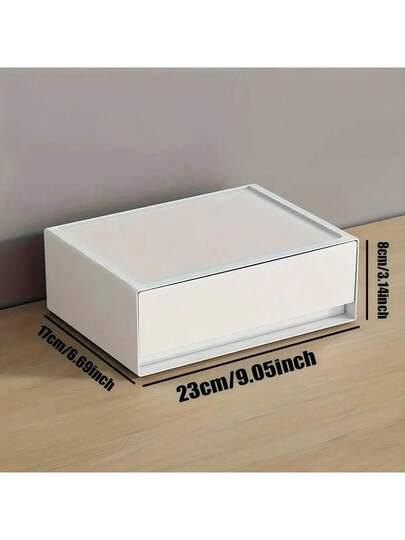1pc Simple Minimalist White Drawer Storage Box Stackable Multi-Compartment Organizer For Cosmetics Stationery Jewelry Accessories Small Items Desktop Vanity Table Bedroom Bathroom Kitchen Organization Solution Compact Space Saving Container