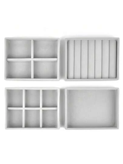 1pc Small Portable & Stackable Velvet Jewelry Storage Box With Compartments For Rings, Earrings And Necklaces - Grey - View 4