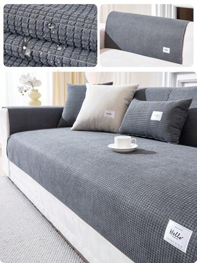 1pc Splash-Proof Corn Corduroy Sofa Cover 1234 Seater, Pet-Proof, Modern Minimalist Style Sofa Seat Cushion Cover Armrest Backrest Protector, Non-Slip, Machine Washable, All Season - Dark Grey - View 10
