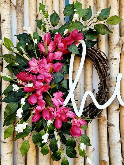1pc Spring Tulip Wreath Artificial Flower Garland, Farmhouse Decor Gift, For Windows, Doors, Walls, Fences, Outdoor Garden, Wedding Props, Fake Flowers