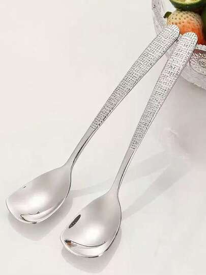 1pc Stainless Steel Flat Head Spoon, Hammered Texture Dessert Spoon, Western Dining Spoon, Meal Spoon, Ice Cream Spoon - Silver - View 11
