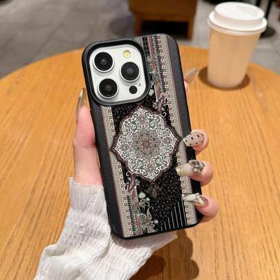 1pc TPU Vintage Romantic Exotic Pattern Phone Case Compatible With Apple 17 Pro Max/17/16 Pro Max/15/13/12/11, S20 FE/A15/S24/A55, Redmi Note 11/12/13 Pro, Full Body Soft Protective Cover - Black - View 1