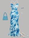 Girlism Teen Girls Floral Print Spaghetti Strap Dress With Ruffle Hem, Elegant & Vacation Dress Blue Dresses Classy Elegant Blue Wedding Guest Dress Mermaid Dress Ruffle Dress Blue Floral Dress