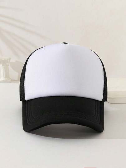 1pc Unisex Plain Sponge Mesh Trucker Cap Baseball Cap, Funny Sun Hat For Everyday Use, Outdoor Activities, Travel, Hiking, Beach - Black - View 1