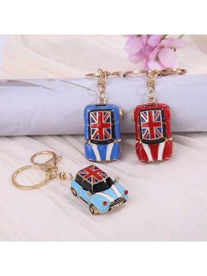 1pc Unisex Rhinestone Alloy Car Model Keychain, Cute Creative Korean Style Bag Pendant Metal Key Chain Ring, Small Gift, Cartoon, Casual, Zinc Alloy Accessory, Summer Christmas Bag Charms Car Accessories Teacher Friend Sister Gift Ideas - One Size - View 1
