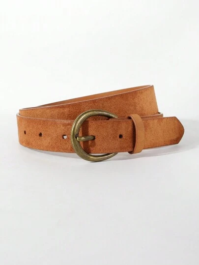1pc Vintage Brown PU Leather Casual Belt For Women, With Antique Bronze Metal Buckle, Suitable For Jeans, Pants Summer, School Fall, Autumn, Halloween - Camel - View 1