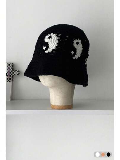 1pc Vintage Handmade Contrast Color Crochet Knitted Bucket Hat, Spring Autumn Fashion Sun Protection Hat, Tai Chi Bagua Handmade Crochet Bucket Hat - Taiji - View 1