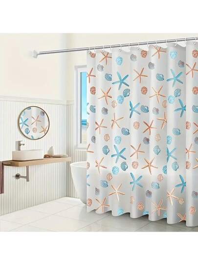 1pc Waterproof Starfish Shower Curtain With Hooks, PEVA Plastic Bathroom Accessory Home Bathroom Decor Fall Decor Bathroom Accessories Back To School - Multicolor - View 1
