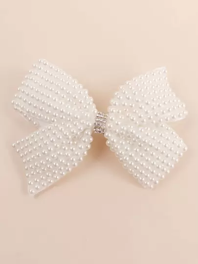 1pc White Fabric Bow Hair Clip, Faux Pearl & Rhinestone Hair Accessory, Elegant Hair Clip Suitable For Flower Girl, Girl, Wedding, Theme Party Gift