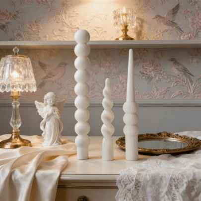 1pc Vintage Style White Scented Candle (Candle Holder Not Included) - Ideal For Meditation, Lighting, Scene Decoration And Ambiance Creation. Features: Wavy Pattern, Cylindrical, Hemispherical And Twisted Pillar Shapes. Smokeless Soy Wax Candle. Suitable For Home Decor, Parties, Tabletop Display, Restaurant Decoration, Weddings, Birthday Gifts And Gifts For Her.