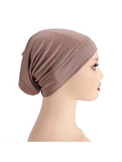 1pc Women Abaya Accessories Solid Color Tube Basic Headscarf Hijab Caps Daily Under Cap Veiled Clothes - Mocha Brown - View 1