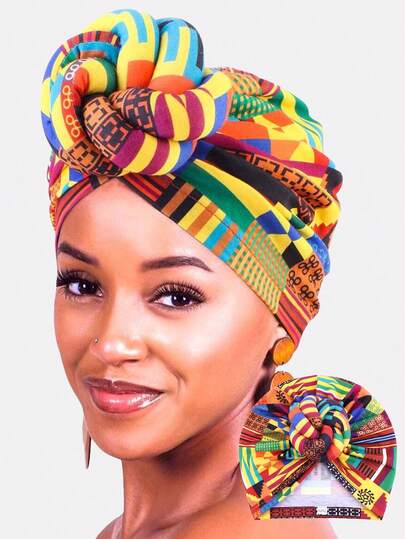 1pc Women's African Print Elastic Beanie Hat With 3D Pompom,Summer,Beach