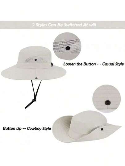 1pc Women's Breathable Mesh Ponytail Sun Hat With Large Brim, Suitable For All Seasons, Beach Hat With Windproof Cord - A - View 11