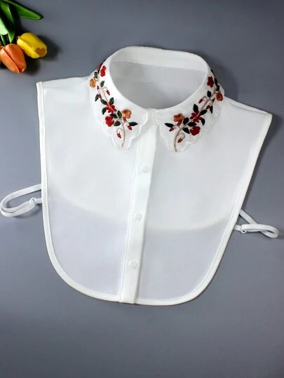 1pc Women's Fashion Embroidered Colorful Floral Collar Chiffon Detachable Collar Decor For Sweatshirt, Sweatshirt, Blouse, Versatile Valentine's Day - White - View 1