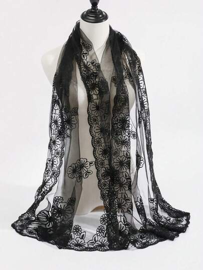 1pc Women's Multi-Color Embroidered Floral Handmade Lace Scarf, Fashionable & Sweet New Style Silk Scarf, Sunshade, Headwrap, Shawl For Spring, Summer, Autumn - Multicolor - View 1