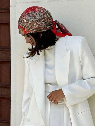 6. 1pc Women's Paisley & Cashew Pattern Printed 70*70cm Bandana Scarf, Fashionable & Versatile For Daily Wear
