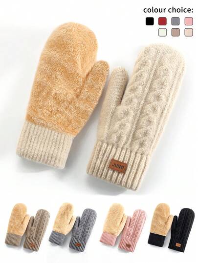 1 st dam vinterstickade dubbelskiktade förtjockade varma pekskärmshandskar, varma dammode fingerlösa handskar lämpliga för daglig användning, fest, middag, cykling, resor, skrivande, kontor - Multifärgad - Visa 1