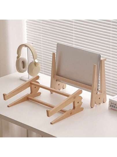 1pc Wooden Laptop Stand, Elevated Gaming Laptop Stand, Elevated Computer Desktop Cooling Base Back To School - charcoal color - View 6