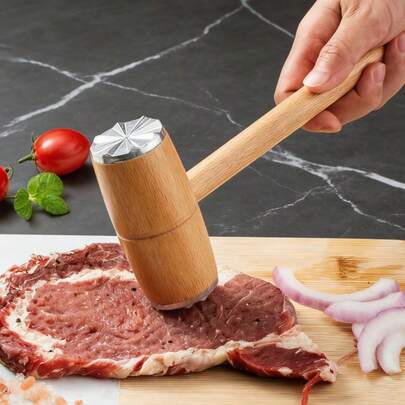 1pc Wooden Meat Tenderizer, Home Use Solid Wood Steak Hammer, Meat Tenderizing And Sinew Breaking Tool, Meat Pounding Mallet, Meat Tenderizer, Use Hammer To Pound Steak, Use Meat Mallet To Soften Meat, Kitchen Home Meat Tenderizing And Cutting Tool, Meat Hammer, Magical Tool