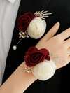 2pcs/1pc Baby's Breath & Rose Wristband Corsage, Suitable For Groom, Bride, Father, Mother, Grandparents For Wedding Decor, Ball Gowns, Homecoming Flowers Valentine's Day Accessories