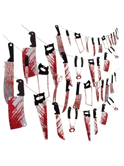 1set Bloody Flower Garland Banner, Halloween Party Decoration For Zombie Or Vampire Party - Multicolor - View 1