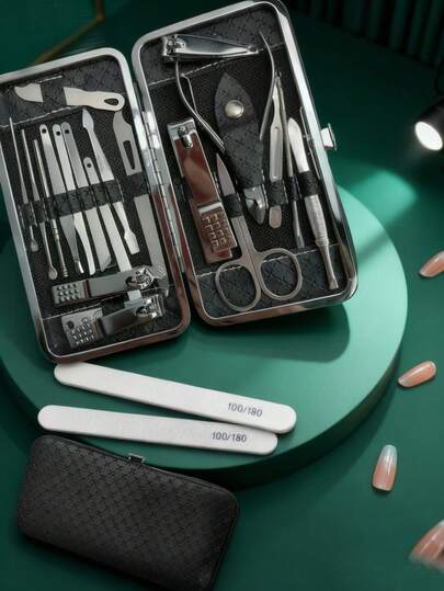 1set Nail Clipper Sets And Nail Files Nail Clipper Set, Complete Set For Home Use, Nail Clipper Set, Nail Clipper, Ear Scoop, Acne Needle, Foot And Nail Trimming Tool Stainless Steel Nail Clipper Set, Complete Set For Home Use, Nail Clipper Box, Nail Groove, Eagle Beak, Dead Skin Clipper, Nail And Foot Trimming Tool - Multicolor - View 1