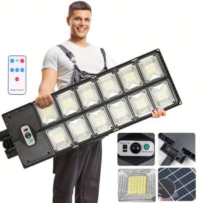 Super bright 1000-lumen solar street light, 504-number LED beads, outdoor large street light, with voice-activated Guanglu motion sensor and remote control, yellow to green light automatically turns on, floodlight, suitable for non-motorized lanes, commercial areas, parking lots, construction sites, and lane illumination