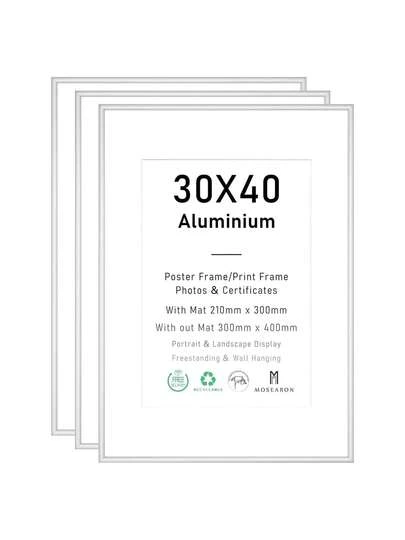 2/3 st 12x16in/30x40cm fotoram i silverfärgad aluminiumlegering, A3/A4 modern heminredningskonstram, minimalistisk och snygg dekorativ fotoram i guldfärgad aluminiumlegering - Silver - Visa 1
