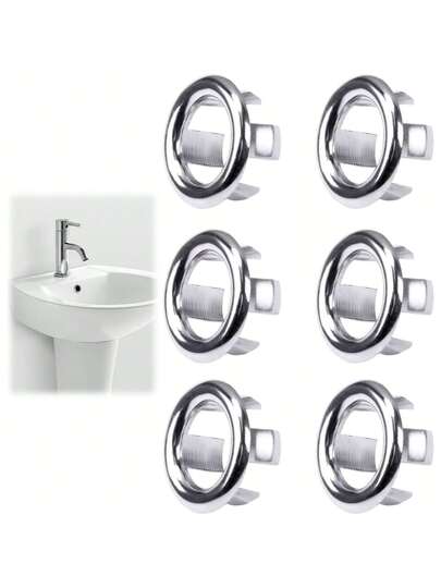 2/4/5 Pieces Of Electroplated Sink Overflow Rings, Circular Basin Covers, Washbasin Overflow Rings, Bathroom Sink Overflow Drainage Covers, Kitchen Sink Overflow Hole Covers, Circular Hollow Plug-In Hole Caps, Bathroom Accessories - Easy To Install, Beautifying Drainage Outlets. Suitable For Households, Kitchens, Bathrooms, Hotels, Etc. Back To School - Multicolor - View 6