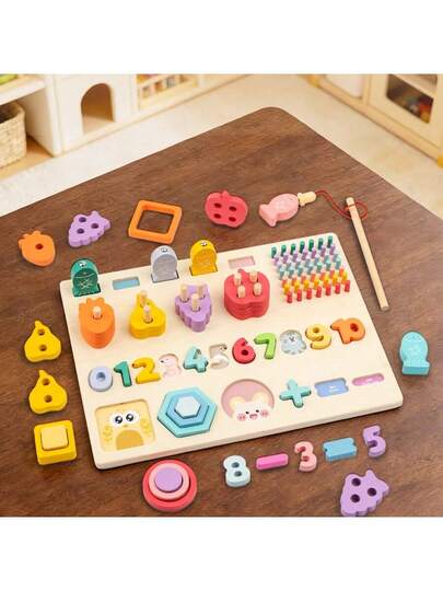 2-In-1/3-In-1/5-In-1 Wooden Multifunctional Matching Board, Color, Shape, Number Recognition, Counting, Fishing Early Educational Toy For Children