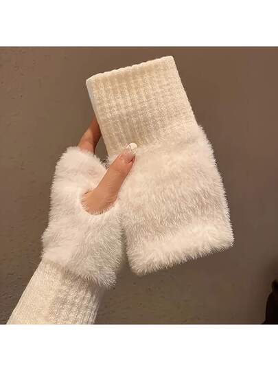 2 par mjuka varma vinterhandskar för kvinnor - fingerlösa handskar med elastisk passform, rent vita kallvädershandskar för vardags- och formella kläder, handtvättbara - mysiga vinteraccessoarer för kvinnor, vinterhandskar för kvinnor, fritidskläder, snygg handskdesign, slitstarkt handskmaterial, kallvädersutrustning, moderiktiga handskar, högkvalitativa handskar, modeälskare (1/2 par) - Multifärgad - Visa 1