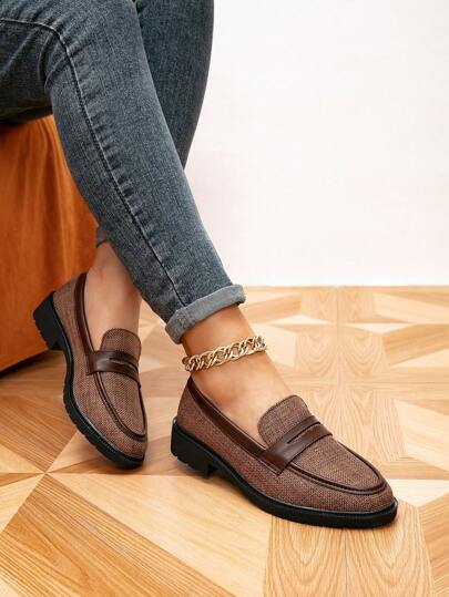 Höst 2025 Dam Platta Loafers med Rund Tå, Retro Tjocka Sula Casual Skor, Student Flats - Multifärgad - Visa 1