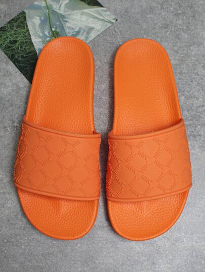 2025 Hot Selling Men's Black Slip-On Casual Slippers, Suitable For Commute, Office, Daily Wear And Bathroom, Soft Rubber & PVC Material, Abrasion Resistant - Orange - View 1