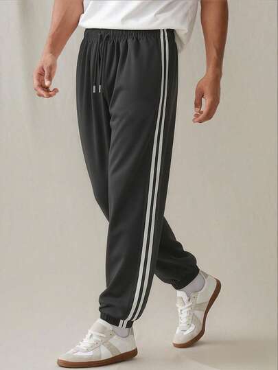 2026 New Men's Contrast Color Striped Casual Sports Pants, Drawstring Joggers, Suitable For Spring/Summer, Sports, Fitness, Leisure, Outdoor, Daily Wear
