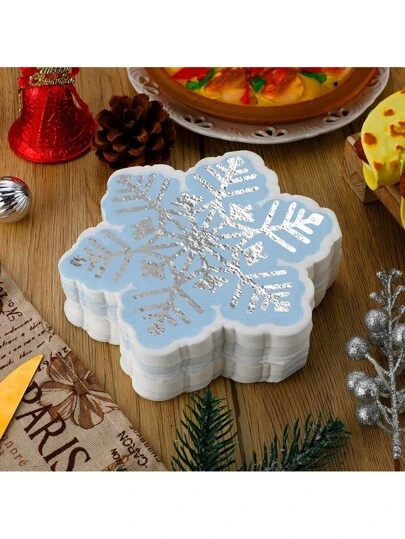 20 st/40 st/60 st snöflingeservetter Frost födelsedagsfestservetter silverblå snöflingejulfestservetter engångsservetter med cocktaildryck för vinterunderlandet-temafest Frost födelsedagsfestdekorationer juldekorationer - Blå - Visa 4