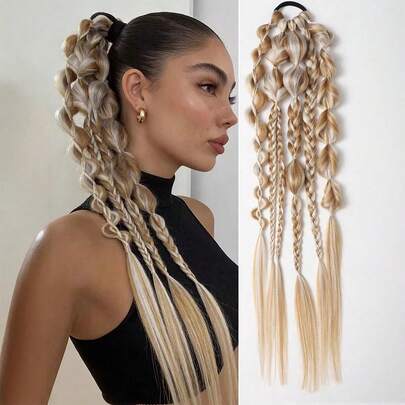 24inch European And American Style Faux Hair Braided Ponytail, Fashion Boxer Braid Wig For Women