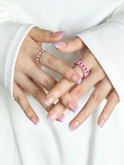 24pcs Short Square Fake Nail & 1pc Nail File & 1sheet Tape - Purple - View 1
