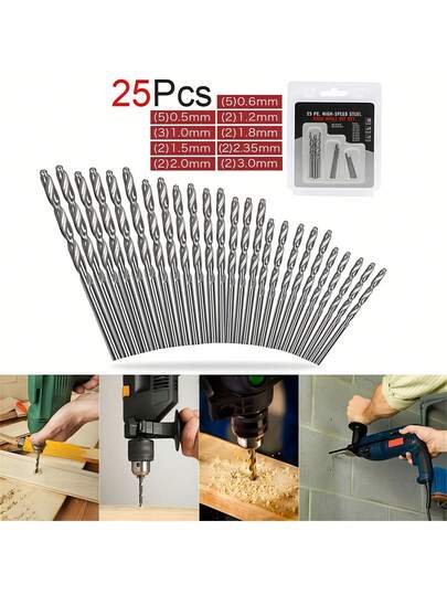 25-delars spiralborrset, 0,5-3 mm mikrospiralborr i snabbstål, lämpliga för precisionsborrning i metall, trä och plast för armband, julklapp - Multifärgad - Visa 1
