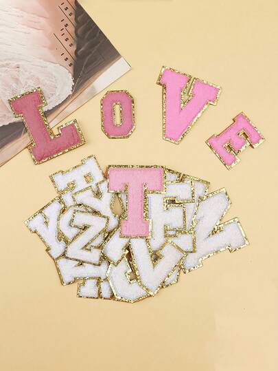 26 Pieces A-Z Alphabet Patches, Gold, Peelable Sew-On 3D Embroidery Alphabet Patterns, Suitable For Hats, Jeans, Clothes, Bags, DIY Crafts, Fashion Decorations, Jewelry Boxes, Storage Boxes, Phone Cases. - Hot Pink - View 37