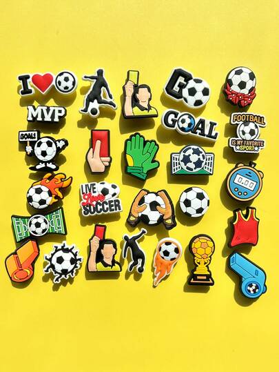 26pcs/Set Football Series Shoe Charms, Including Football, Football Field, Timer Patterns, Suitable For Bracelets, Sandals, Bubble Slippers, Made Of PVC Material, Can Be Used As DIY Accessories Or Party Gifts - Yellow - View 7