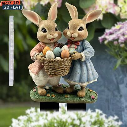 2D Acrylic Cute Easter Bunny Egg Lawn Stakes, Home Garden Yard Decor - A - View 1