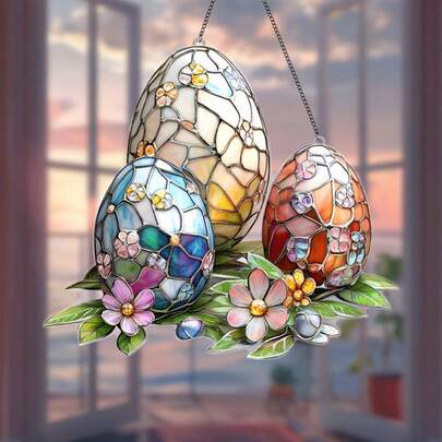 2D Acrylic Easter Egg Theme Sunlight Catcher | Window Decor, Suitable For Home, Cafe, Restaurant, Perfect Outdoor Garden Hanging Decoration, Easter Gift For Friends