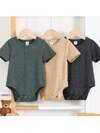 Loomiva 3pcs Baby Boy/Girl Casual All-Match Versatile Minimalist Comfortable Loose Fit Round Neck Short Sleeve Knit Bodysuit, Suitable For Spring/Summer Indoor & Outdoor