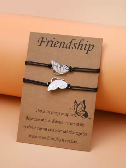 2pcs Butterfly Decor Braided Bracelet - Silver - View 1