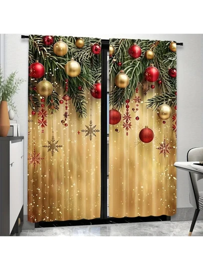2st Eleganta gyllene julbollsgardiner - design med stång, maskintvättbar, lätt hängande polyesterdraperier för inredning i sovrum och vardagsrum, perfekt för festlig atmosfär - Multifärgad - Visa 1